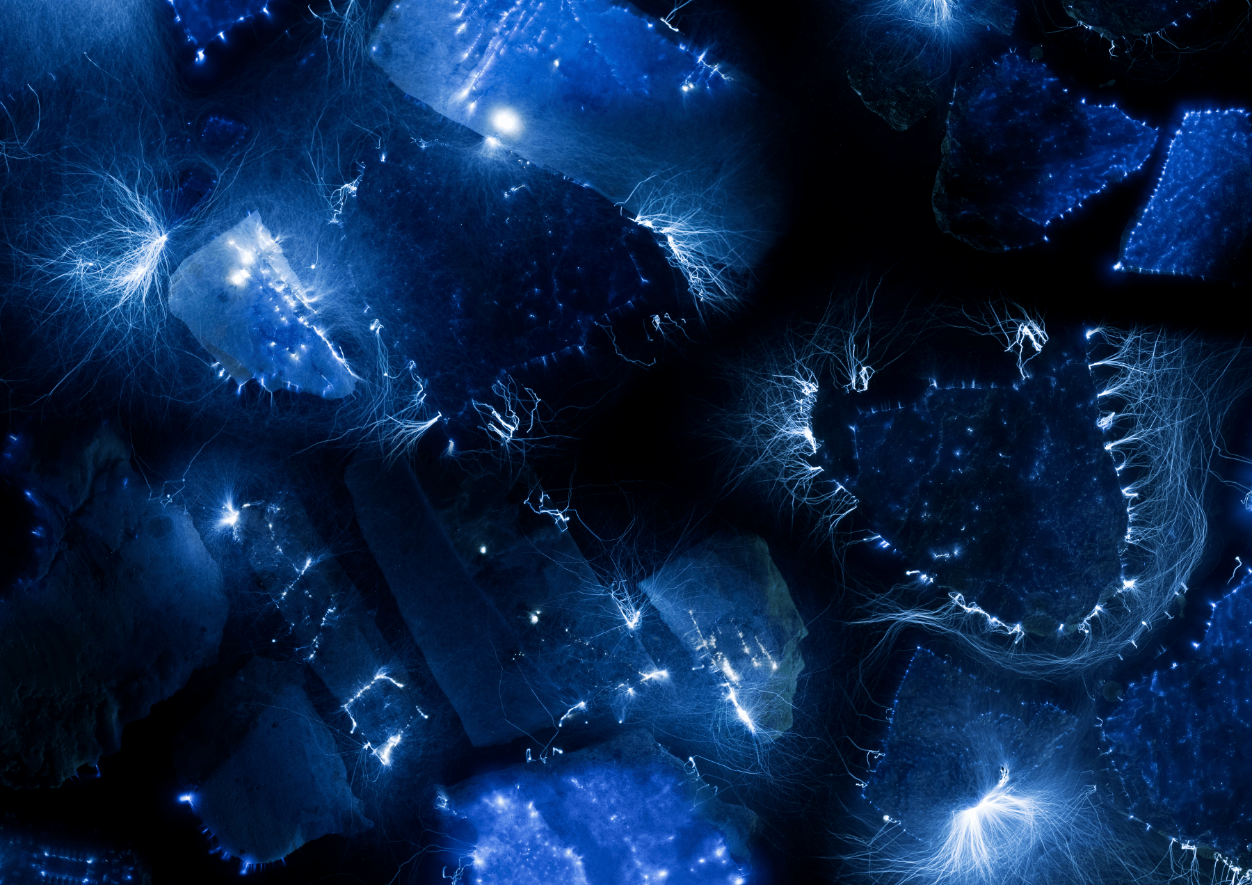 The artificially generated ‘earthing discharge’ of hard coal creates unique structures of electrical sparks and transports viewers into a precisely captured world of formerly natural energy flows. However, it is precisely this combination that also symbolises two of the most important industrial revolutions: the comprehensive use of hard coal and electricity in production processes. These ‘releases’ of human resource exploitation and their effects on organically animated terrestrial zones are exemplary of the themes in Marjolijn Dijkman’s work and our 2025 annual programme.