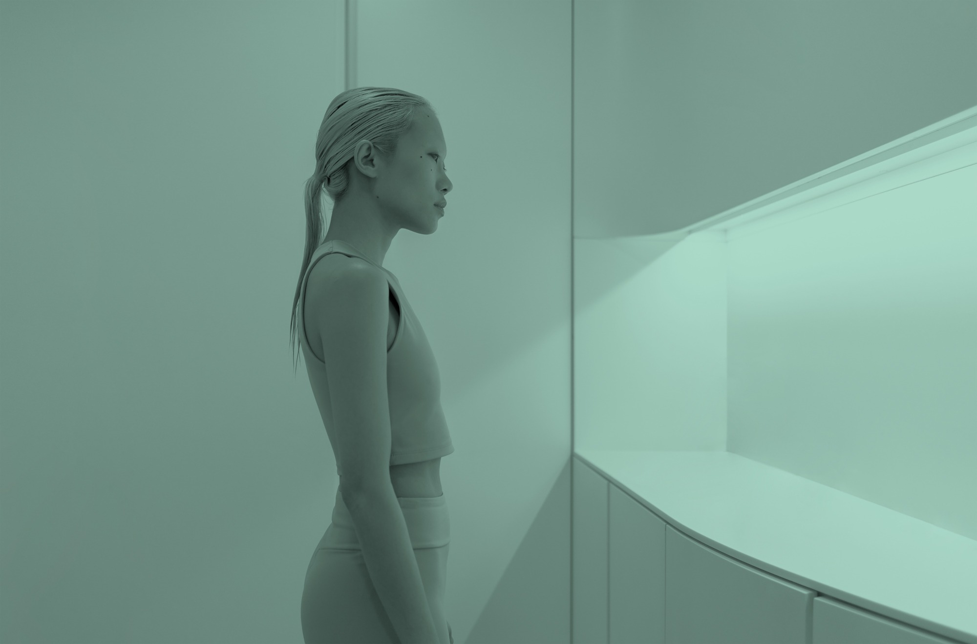 Mit Borrás. Hanaba. Aadaptasi Cycle. Film. Installation | Performance. Work by MIt Borrás. Art Director Rachel Lamot, Music Daniel Vacas Peralta. With Weixin Quek Chong, Written by Mit Borrás & Rachel Lamot, Fashion Design Kim Rosario, Fashion Design Path by Janine Grosche, Drone Liu Zhang, Drone Field, Jesús Moreno, Clinical Department Gómez Bravo, Dental department Dentix, Relevium, Make Up Andréa Méndez, Eloy Noguera Atienza, Production Design Cavve. Images courtesy of the artist, 2023